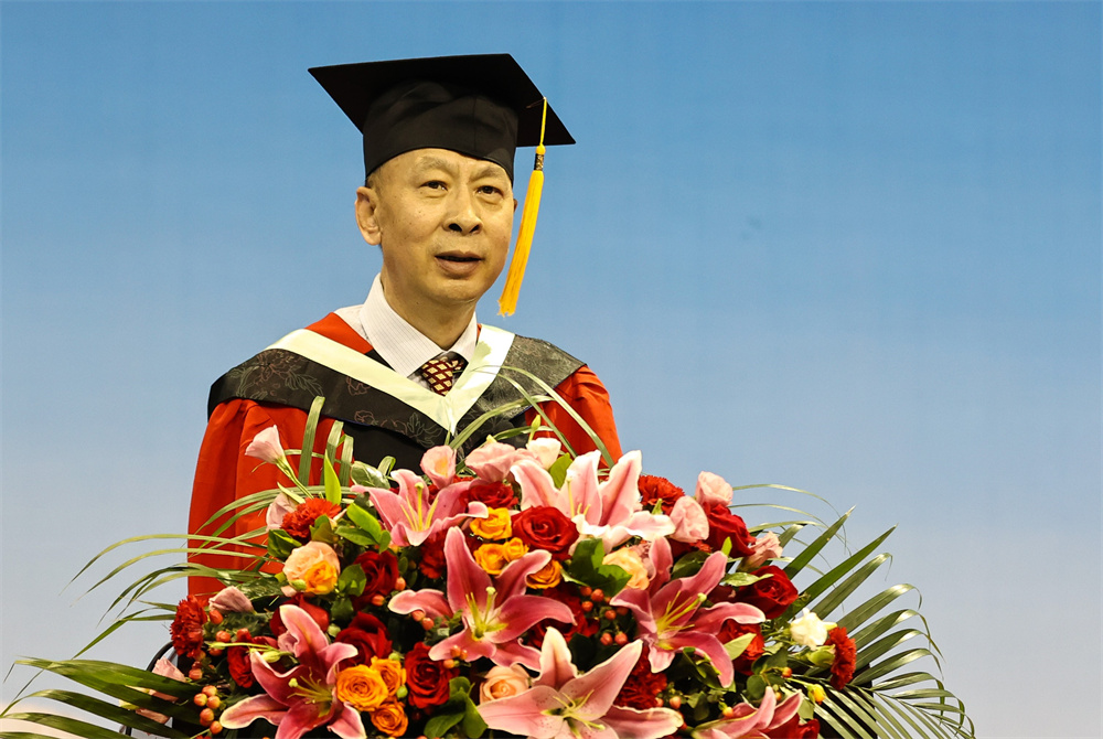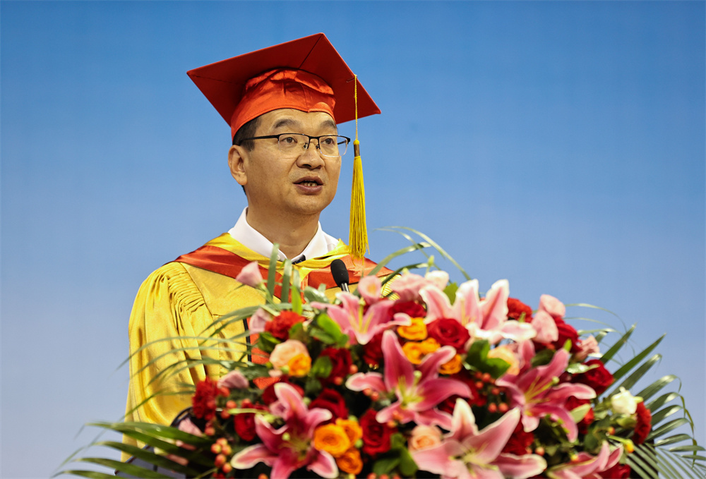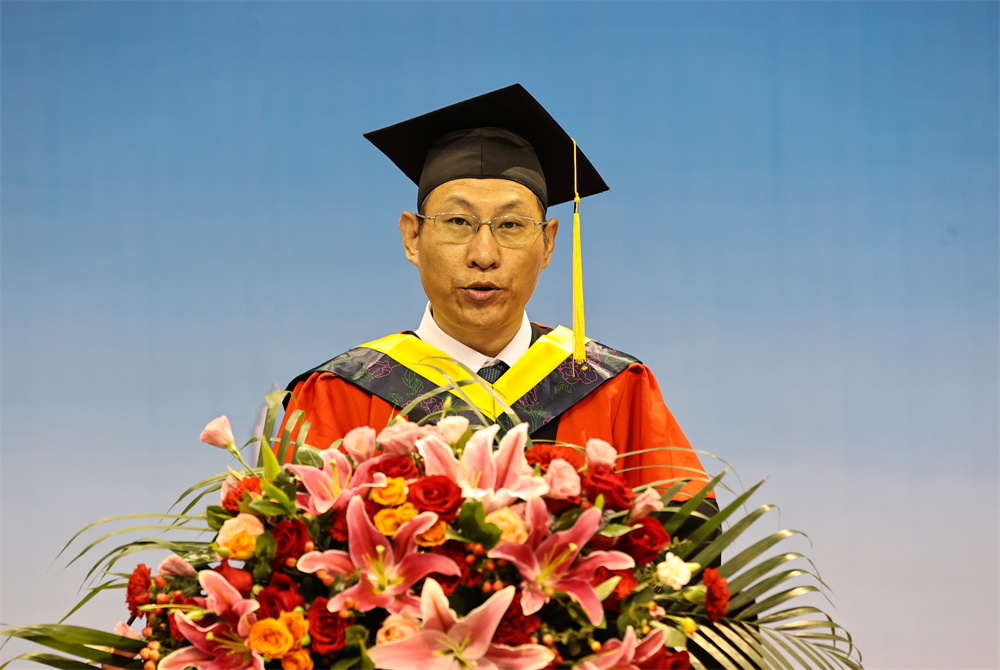 食品科学与生物工程学院闫师杰教授代表全体教师发言,他寄语毕业生自强不息,坚持学习,勇于创新,为自己的青春谱写华丽的乐章。