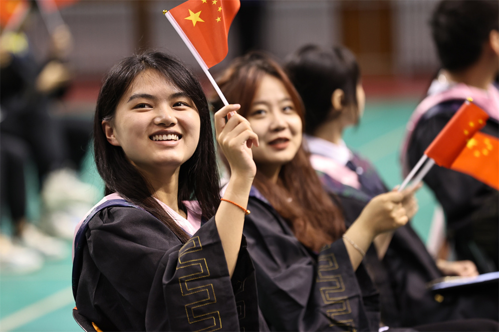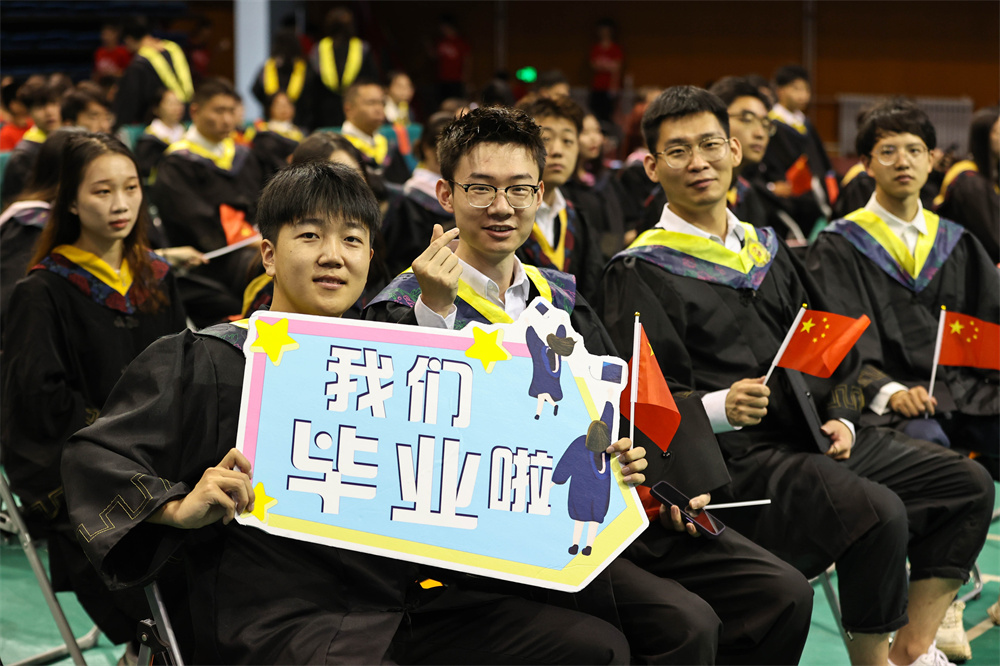 毕业典礼在全场合唱《歌唱祖国》中落下帷幕。