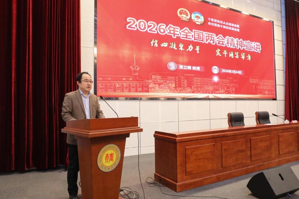 3月24日下午,我校举行2026年全国两会精神宣讲报告会。全国政协委员、我校农学与资源环境学院班立桐教授作宣讲报告,校党委书记李鑫主持报告会并结合全国两会精神讲授形势政策课。