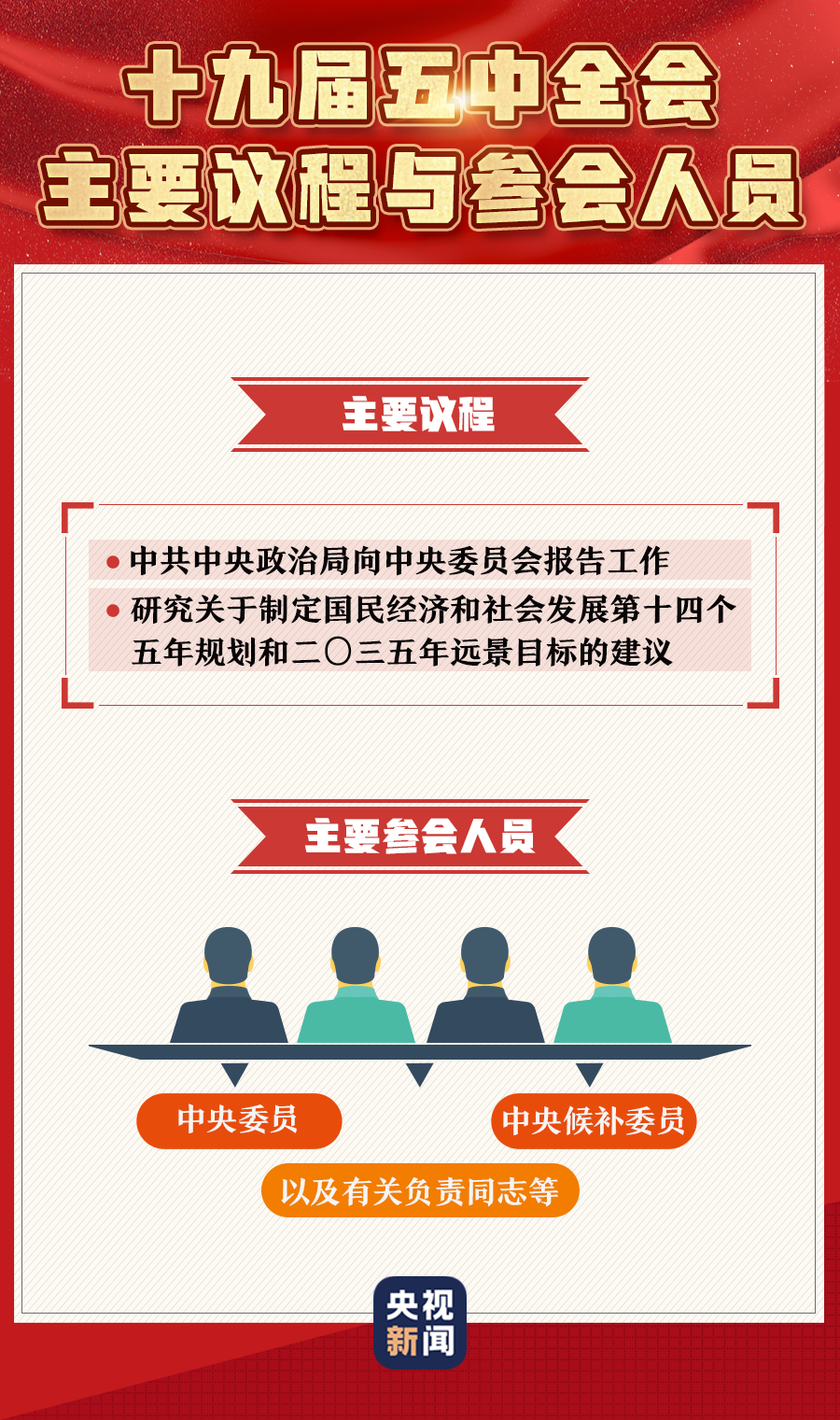 中国共产党第十九届中央委员会第五次全体会议26日上午在京召开。中央委员会总书记习近平代表中央政治局向全会作工作报告,并就《中共中央关于制定国民经济和社会发展第十四个五年规划和二〇三五年远景目标的建议(讨论稿)》向全会作了说明。今天,一组图带你了解十九届五中全会↓↓↓