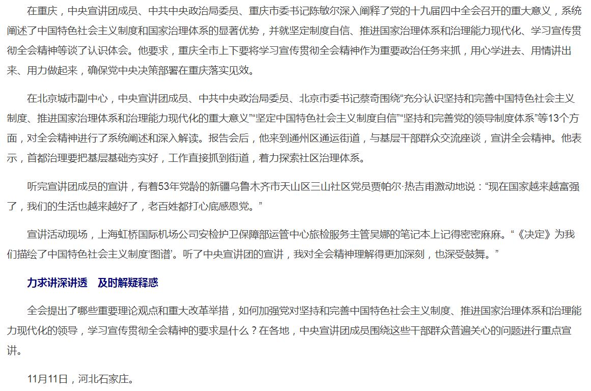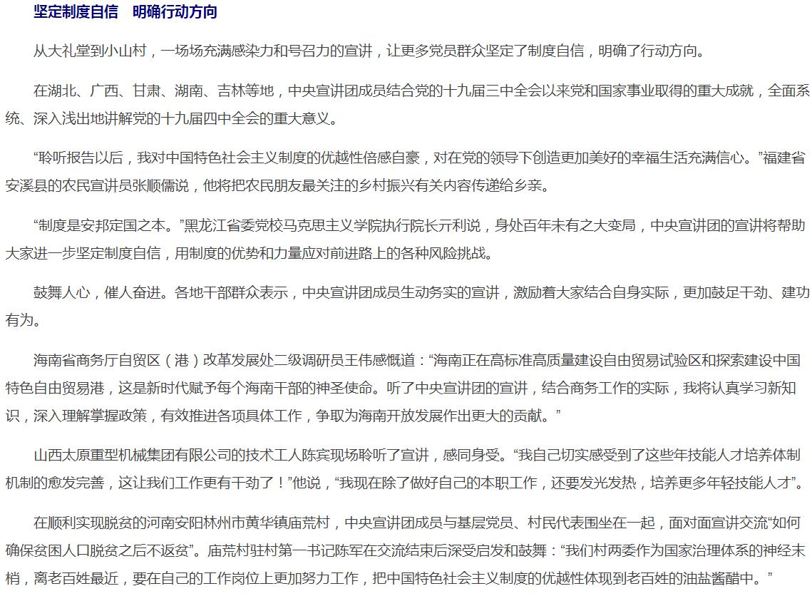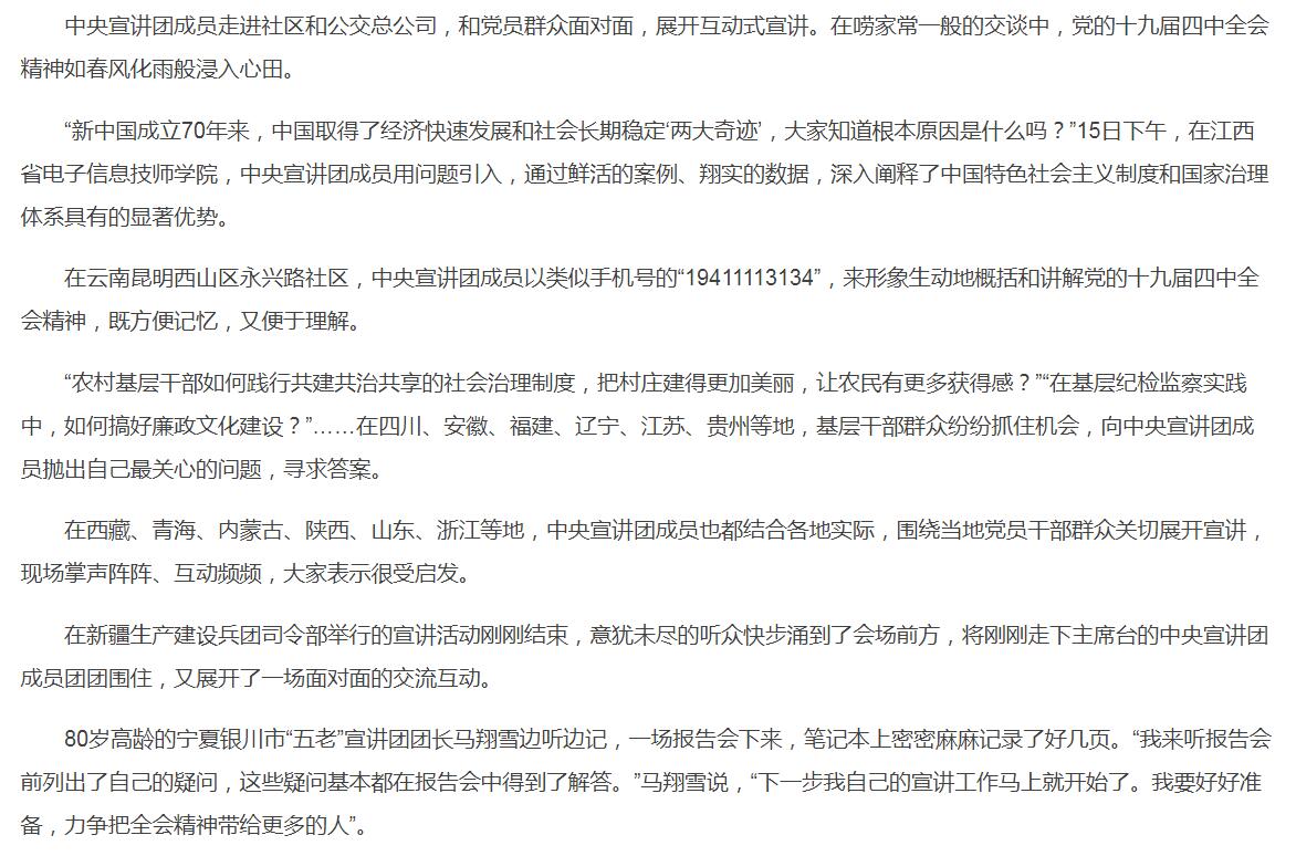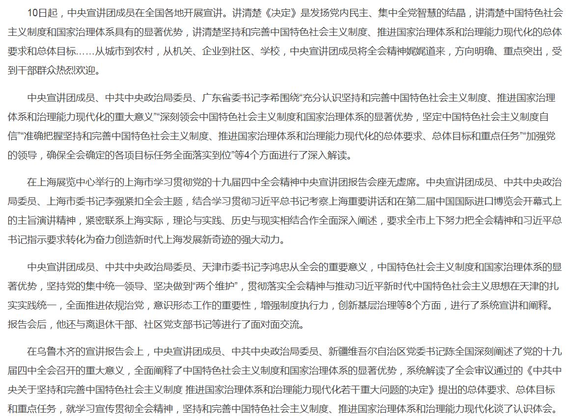 增强制度自信,书写“中国之治”新篇章——学习贯彻党的十九届四中全会精神中央宣讲团宣讲活动综述
