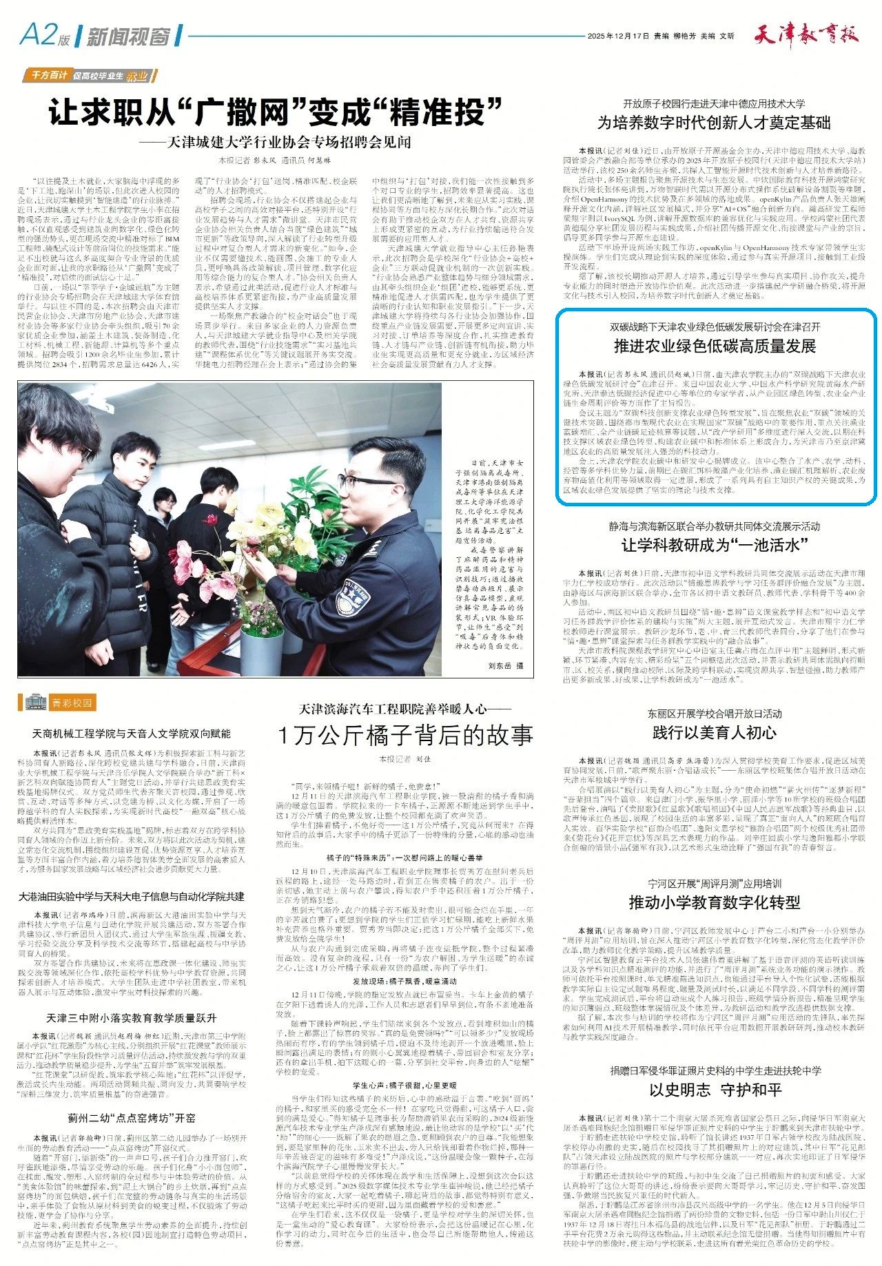 2025年12月12日,《天津教育报》、今日头条等媒体报道我校主办“双碳”战略下天津农业绿色低碳发展研讨会。