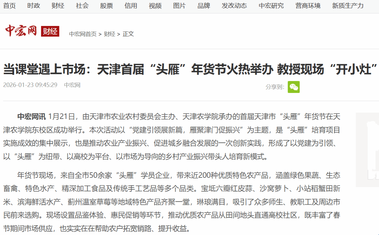 中宏网报道首届天津市“头雁”年货节在我校举行