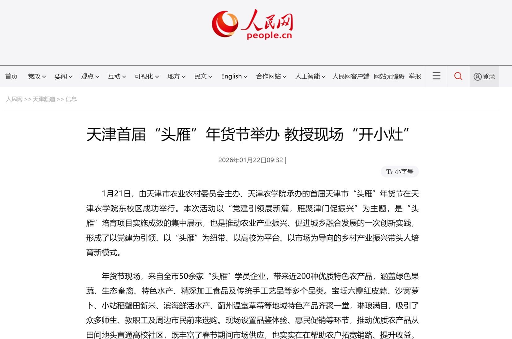 ,由天津市农业农村委员会主办、天津农学院承办的首届天津市“头雁”年货节在我校举行。